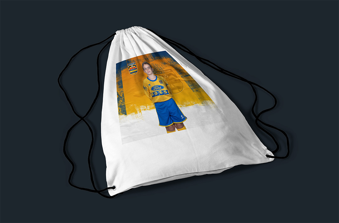 345x450mm – Polyester blanc avec cordons noirs et impression vibrante en quadrichromie. Votre touche personnelle en déplacement.